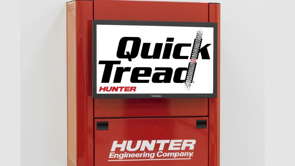 Hunter’s Quick Tread inspection technology automatically measures tire tread depth and captures vehicle identification in seconds as motorists drive into the service lane