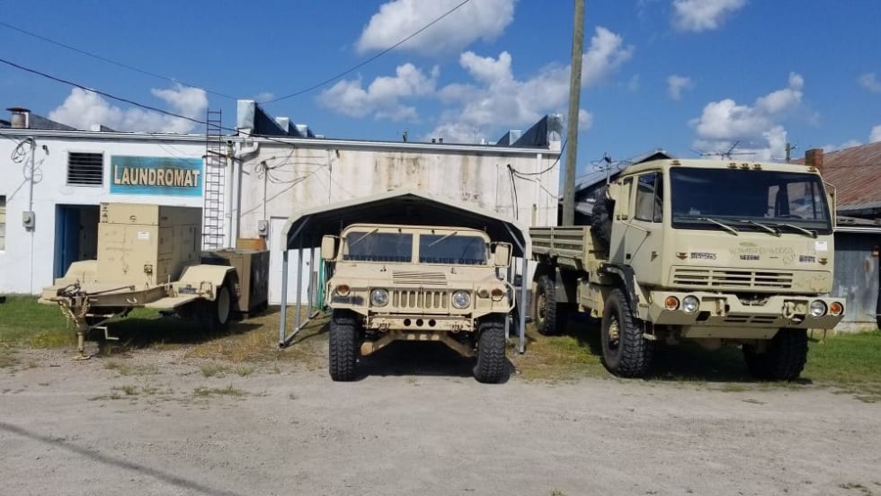 The Stantonsburg (N.C.) Police Department's emergency evacuation fleet consists of a 2.5-ton medium tactical vehicle, a Humvee, and a mobile generator.