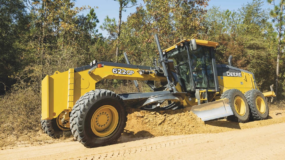 John Deere has added new features to its GP-Series motor graders — Auto-Pass, Auto-Shift Plus, Configurable Float, and SmartGrade Remote Support.