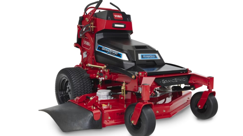 The Toro GrandStand Revolution stand-on mower is now powered by Toro’s HyperCell batteries.