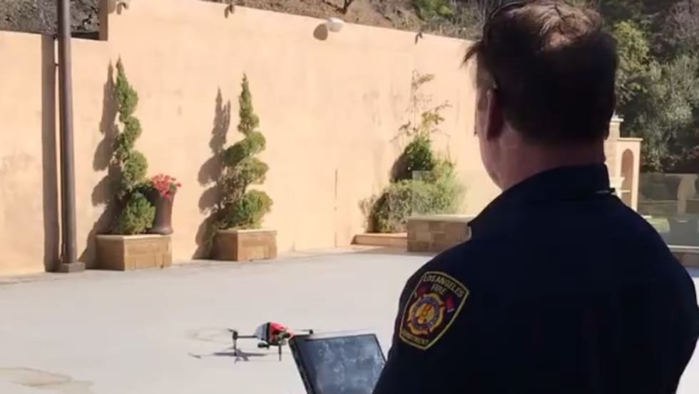 The drones use thermal imaging to seek out hot spots and a camera to assess property damage, which help the Los Angeles Fire Department make decisions when developing a response plan.
