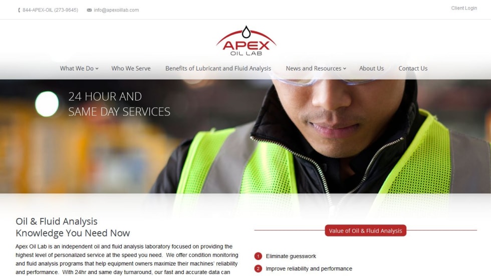 The recently opened Apex Oil Lab offers 24-hour and same-day turnaround on most oil analysis tests.