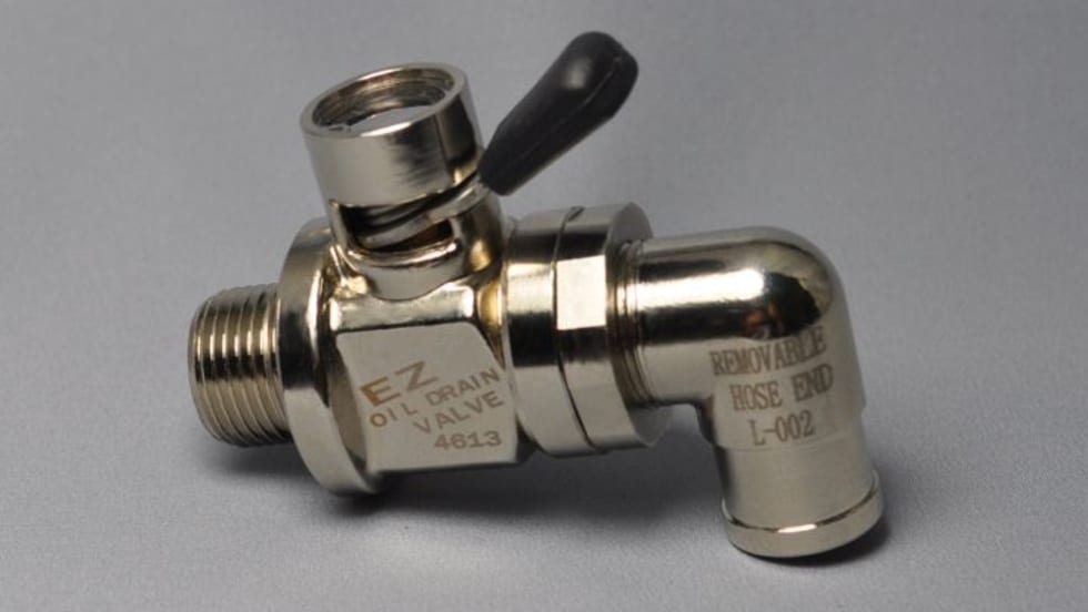 The new EZ Oil Drain Valve EZ-215 can be fitted to Caterpillar C-15 ACERT engines with a 1-5/16-inch-by-12UNF drain plug. The new drain valve part fits larger drain plugs.