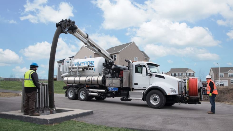 The Vactor RDB 1015 rapid deployment boom has the ability to extend and retract 15 feet of vacuum hose.