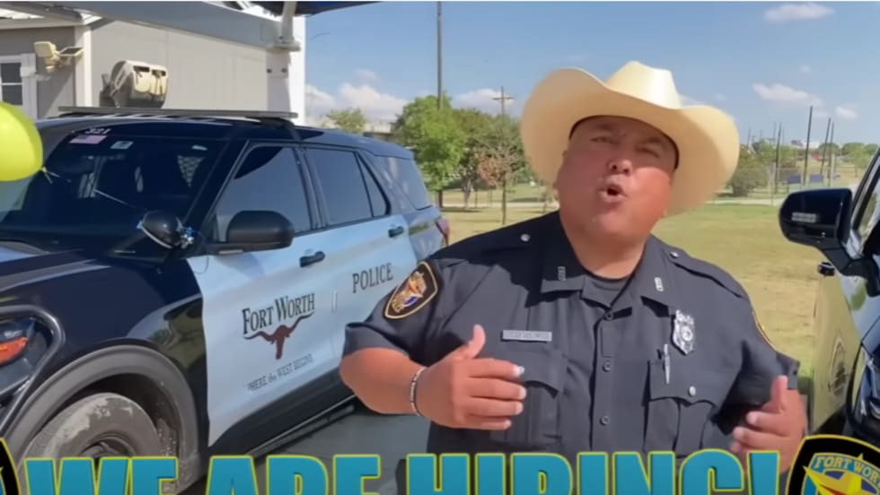 The video features “Officer Big B” energetically selling recruits and “trade-ins” on working for the Fort Worth PD.