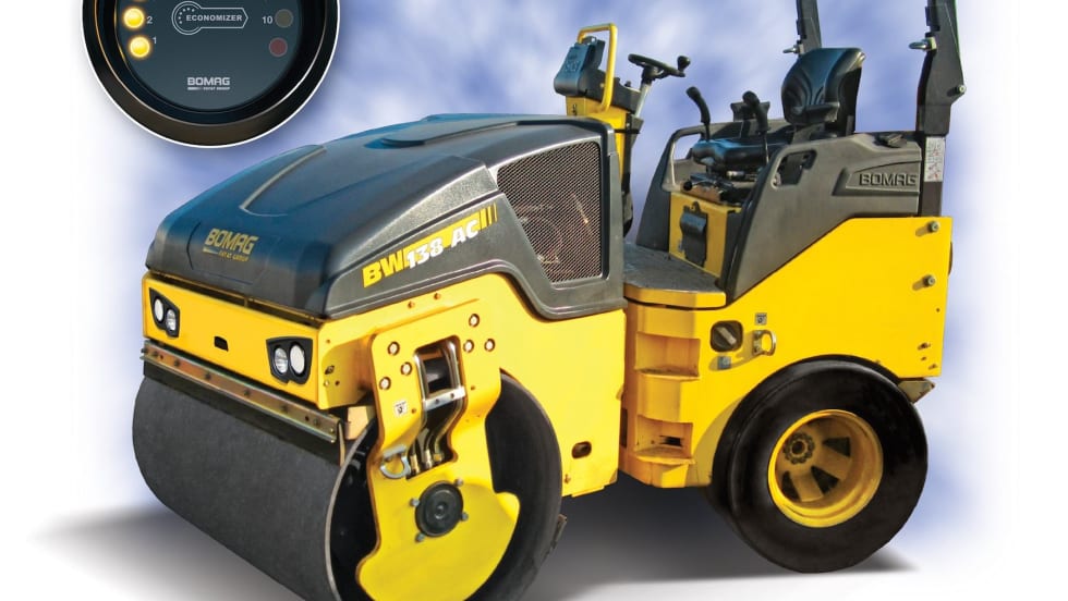 The 4.5-ton, 54-in. wide BW138AC-5 roller features a traditional vibratory steel drum in the front and four pneumatic tires at the rear.