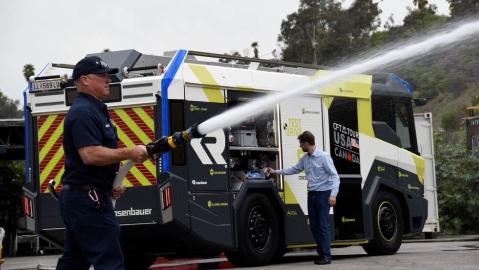Fire service vehicle manufacturer Rosenbauer is testing the pioneering fire truck with departments in Berlin, Amsterdam, and Dubai.