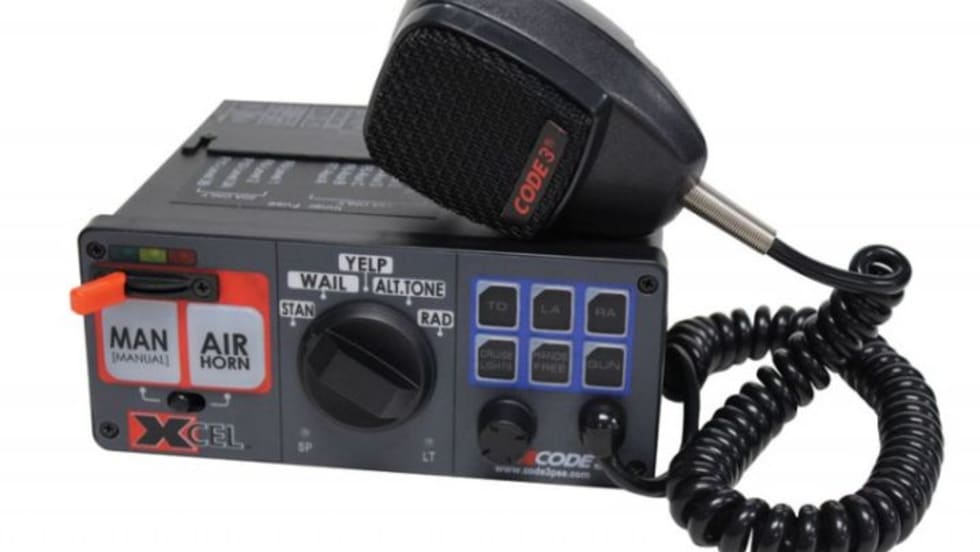 The Code 3 XCEL siren adds features to help officers more easily use it, including over-sized Manual and Air Horn buttons underneath the three-level slide switch.