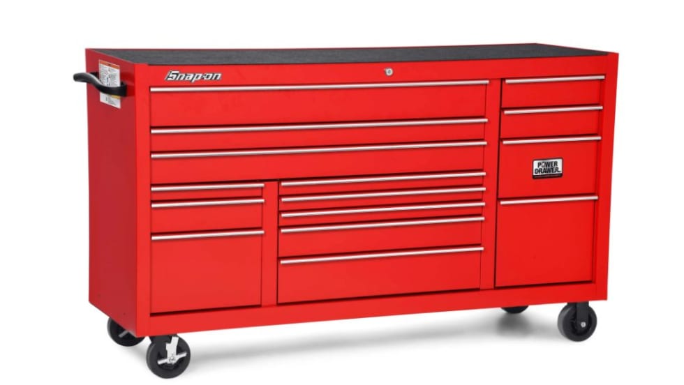 The Snap-On KCP1423 15-drawer Double Bank Classic Series Roll Cab with PowerDrawer and SpeeDrawer is taller, with 50% more storage.