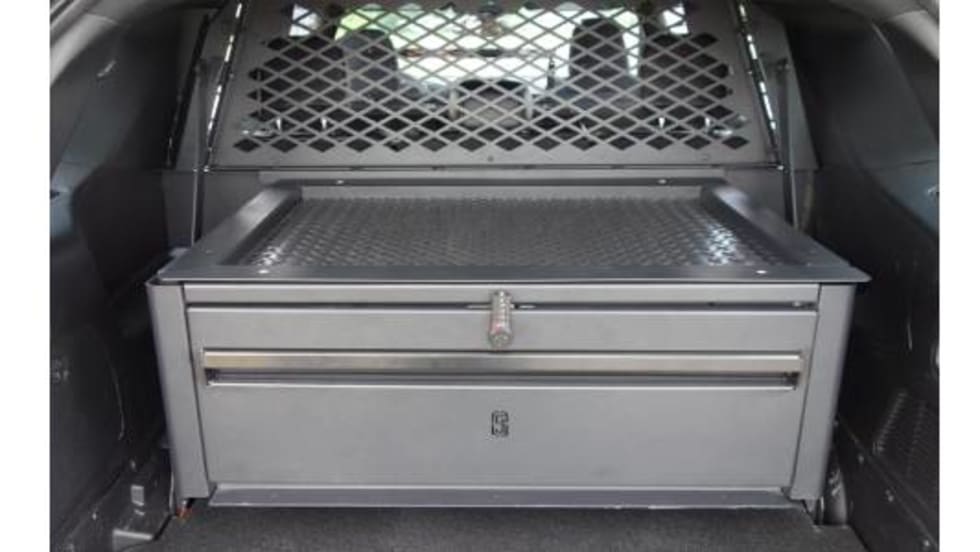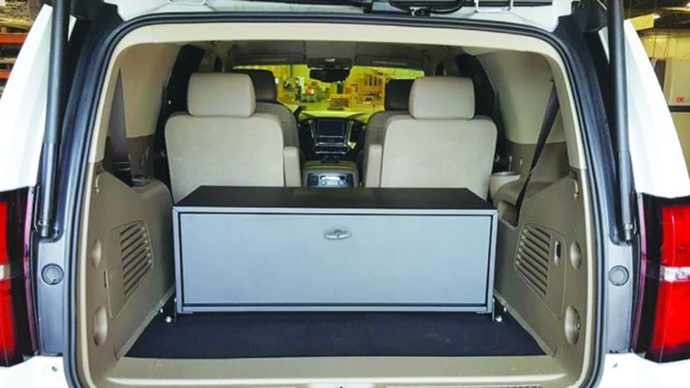 The oversized drawer is designed to fit in the back of an SUV and is deep enough to hold a collection of tactical gear.