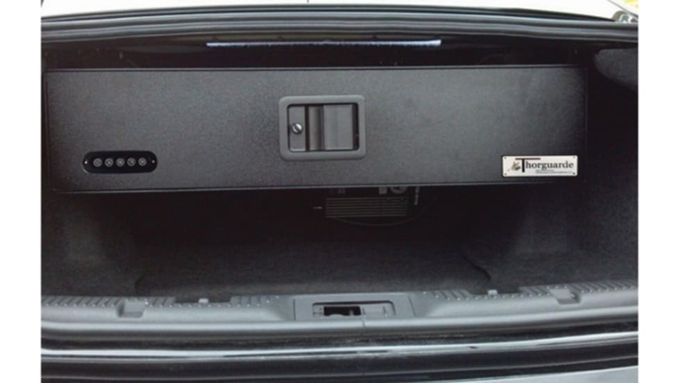 Dual Federal Motor Vehicle Safety Rated rotary latches and shoulder pins make the Thorguarde weapon storage vault virtually impossible to pry open.