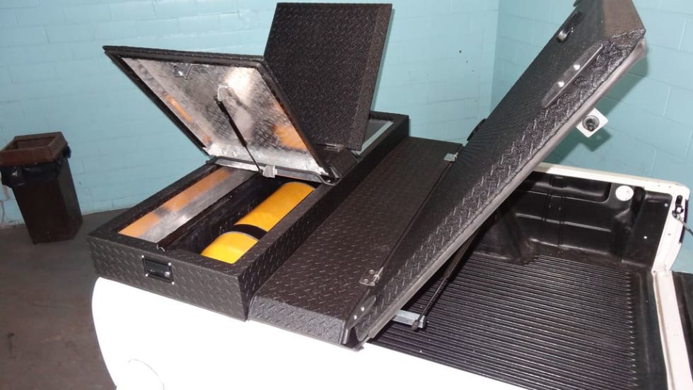 A.R.E.'s WorkCover LS fiberglass tonneau cover fits Ford F-150 short bed trucks from model years 2009 to 2014. The WorkCover LS features doors on each side. The entire cover also opens from the rear of the truck using a hinge system at the front of the cover.