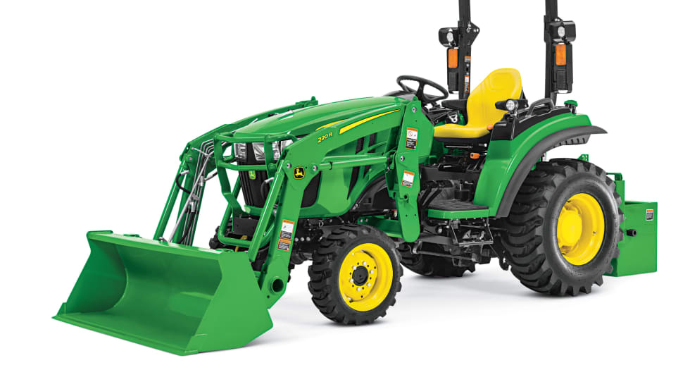 John Deere's expanded 2R Series Compact Utility Tractor line now includes the large-chassis 2032R and 2038R that feature a wide tractor stance and longer wheelbase which, combined with the increased tractor weight, improve stability.
