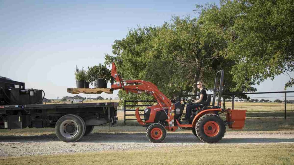 Kubota Tractor Corporation's new B01 Series compact tractors can be used for mowing lawns, working light construction, or landscaping.