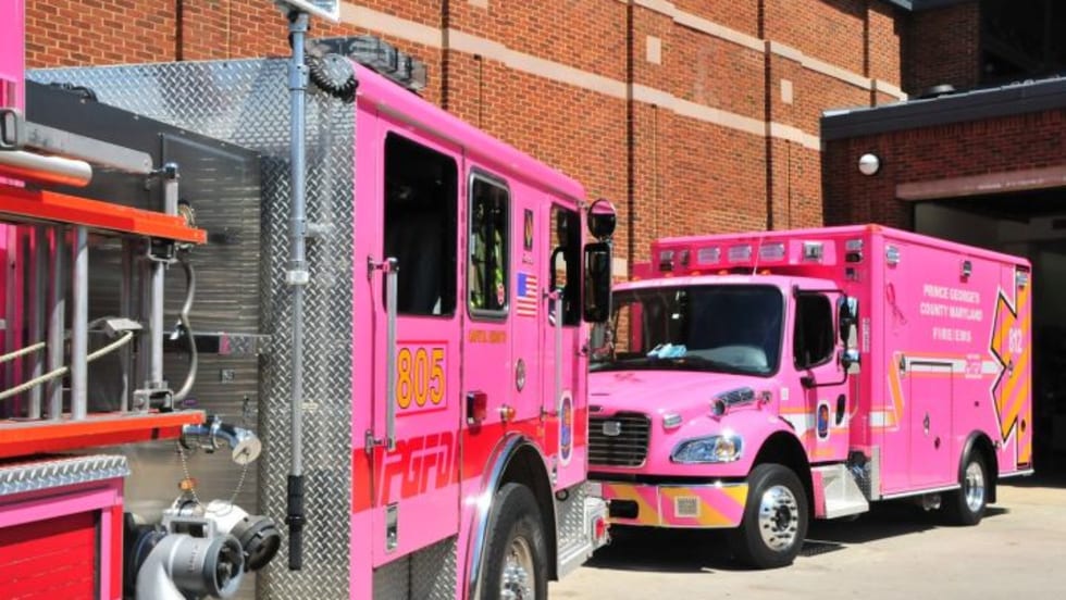 Prince George's County firefighters added a pink ambulance to their fleet to raise awareness for breast cancer this month, and have asked the public to help name the vehicle via Twitter.