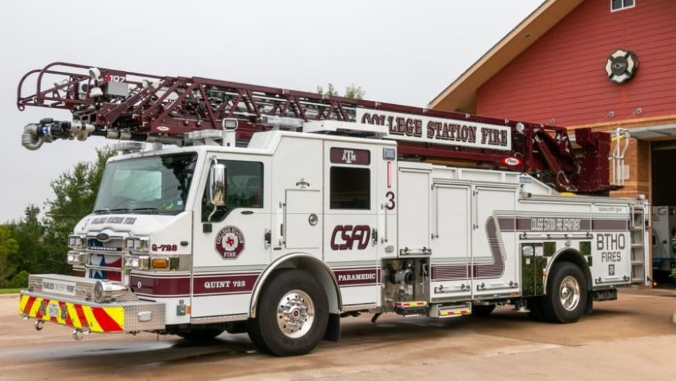 The College Station (Texas) Police Department fleet has a new addition: a fire engine with a paint job that pays homage to Texas A&M University.