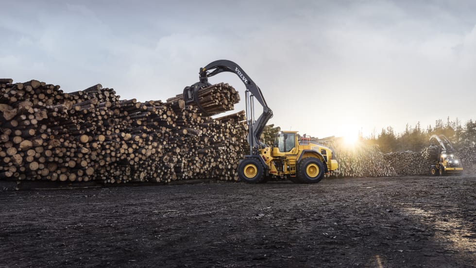 The machine's maximum lifting capacity is increased from 19,401 lbs. on the L180H High Lift to 24,600 lbs. on the L200H High Lift. Grapples come in a range of shapes and sizes to suit site requirements.